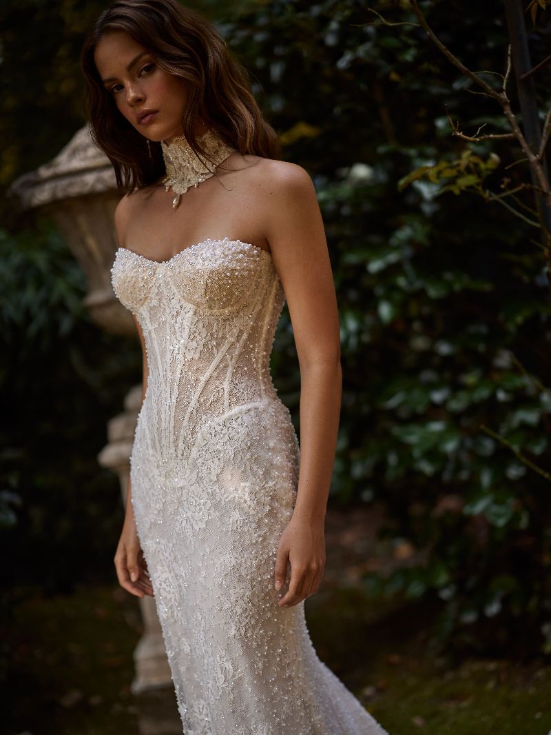 Myrtus White one è un abito da sposa molto particolare grazie al dettaglio di queste maniche con rouge