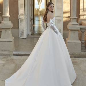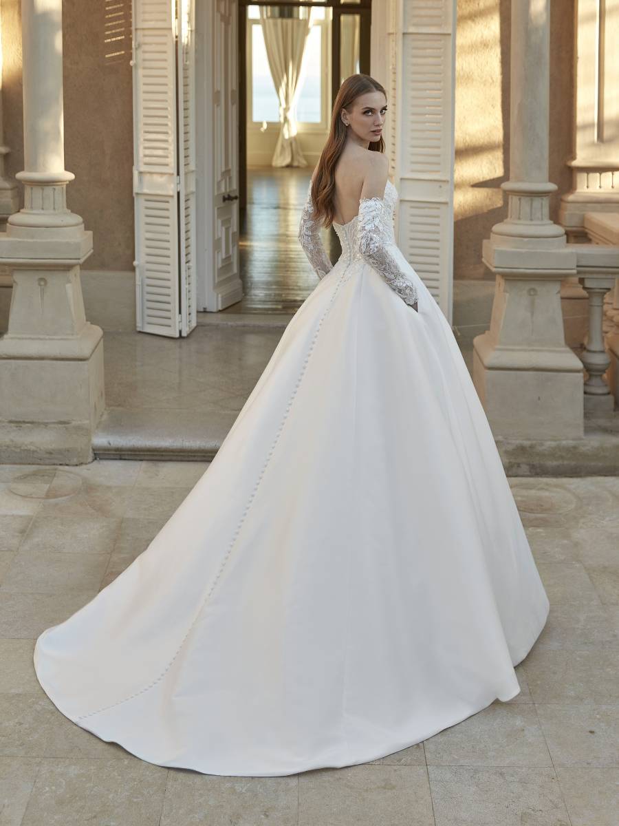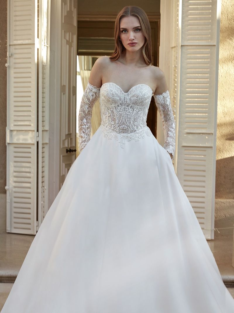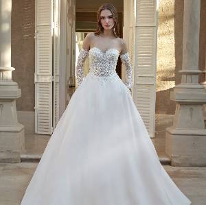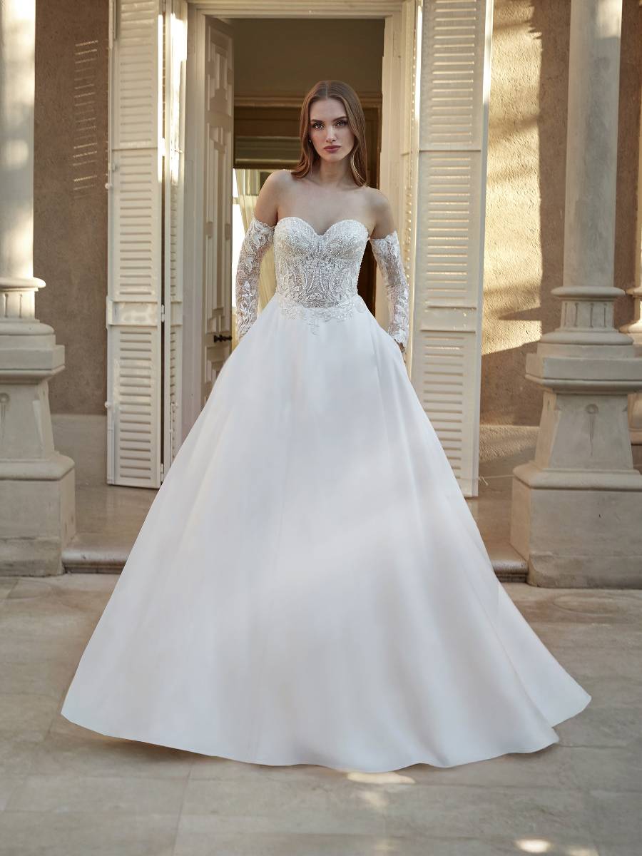 Abito da sposa in mikado con scollo a cuore stile principessa con applicazioni di perline sul corpino strutturato