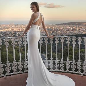 Abito da sposa a sirena con scollo all'americana e schiena scoperta in crêpe